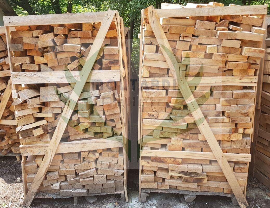 La modalità di imballo, come nel caso della legna da ardere spaccata, è in pallet standard da 1x1x1,8 m, solo come nel caso di questa tipologia di legna da ardere, i pallet non hanno più 1 mc. ma 1,3-1,4 mc. da quando provengo da rivestimenti di legno, gli angoli del legno sono a 90° e la disposizione nel pallet avviene con vuoti d’aria molto inferiori rispetto alla legna da ardere spaccata.